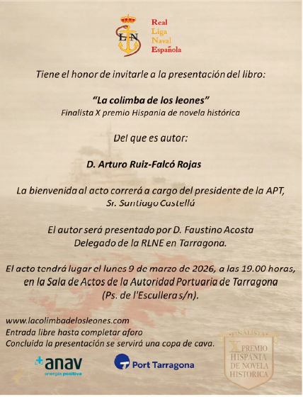 Por gentileza de La Real Liga Naval de España y la Autoridad Portuaria de Tarragona tengo la oportunidad de presentar esta novela en la milenaria ciudad de Tarragona.